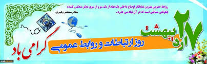 بیست و هفتم اردیبهشت ماه به عوان روز ملی ارتباطات و روابط عمومی در تقویم کشورمان بیانگر اهمیت و جایگاه والای روابط عمومی بوده و در حقیقت فرصت ارزشمندی برای تقدیر و تشکر از زحمات و تلاشهای صادقانه سخت کوشان عرصه روابط عمومی است. عاشقانی که شبانه روز در ایفای نقش خود تلاش میکنند.