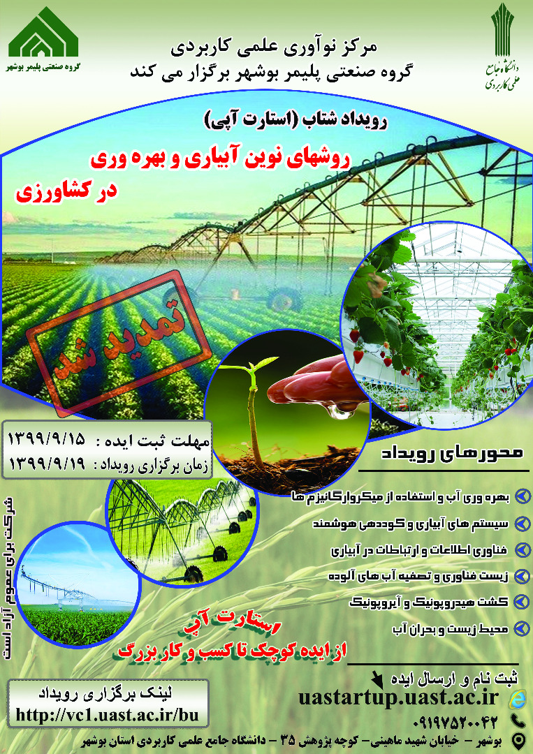 برگزاری رویداد استارت آپی روش های نوین آبیاری و بهره وری کشاورزی در دانشگاه جامع علمی کاربردی استان بوشهر