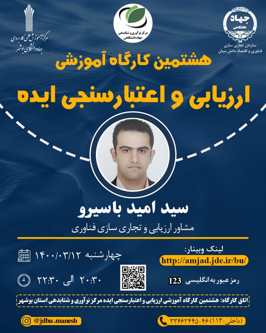 وبینار ارزیابی و اعتبار سنجی ایده توسط مرکز آموزش علمی کاربردی جهاد دانشگاهی استان بوشهر برگزار می شود
