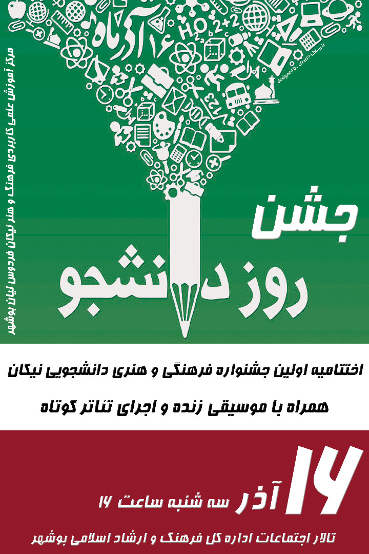 معرفی ویژه برنامه بزرگداشت روز دانشجو در مراکز علمی کاربردی نیکان فردوس لیان بوشهر و دیلم