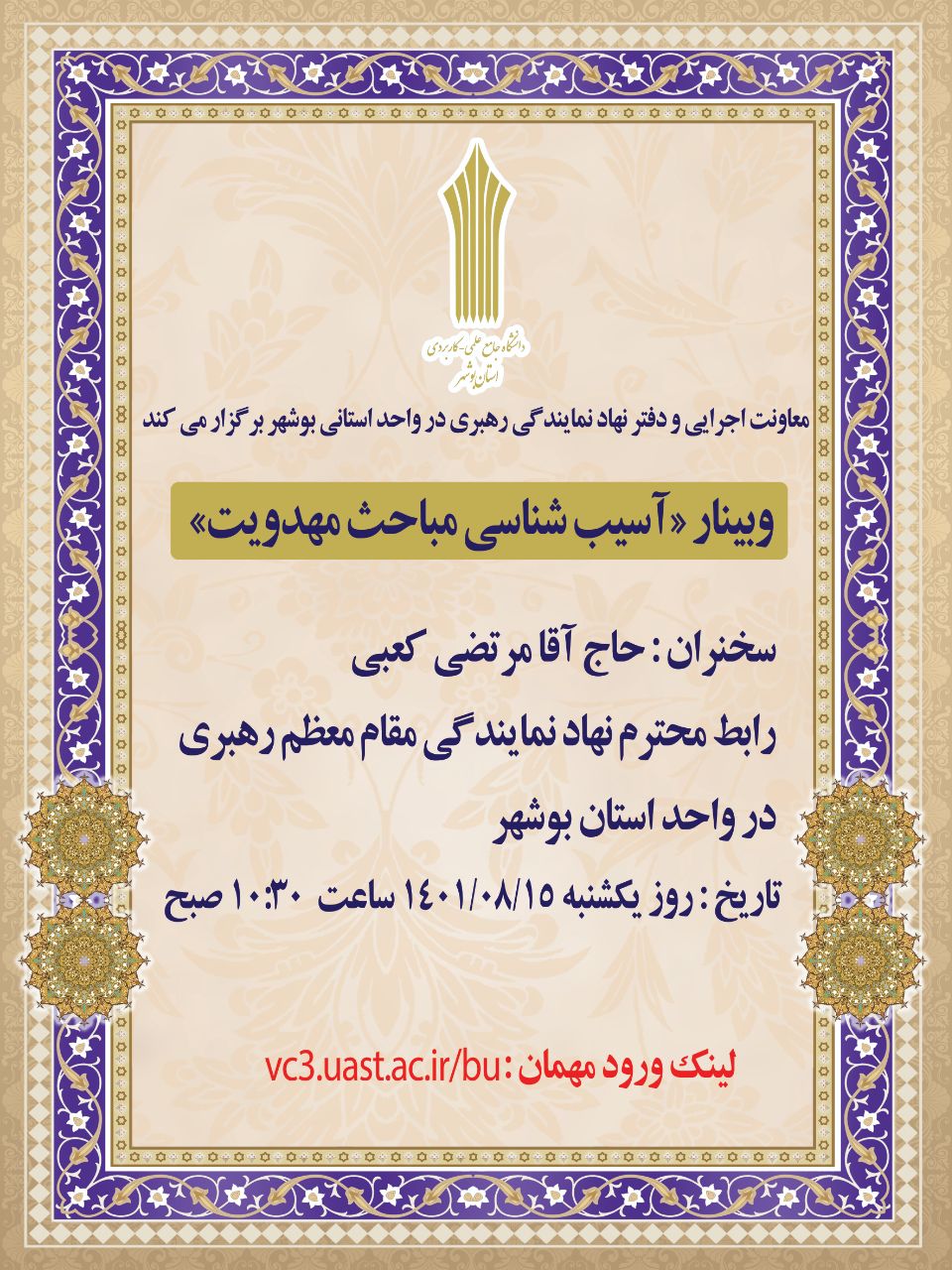 دانشگاه جامع علمی کاربردی استان بوشهر وبینار " آسیب شناسی مباحث مهدویت " را برگزار می کند