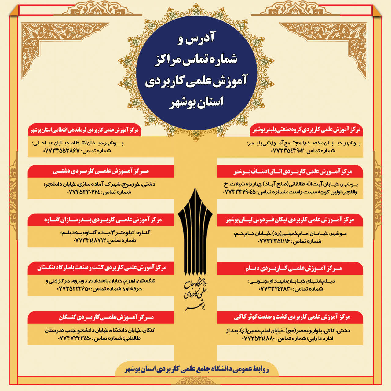 معرفی مراکز آموزش علمی کاربردی استان بوشهر