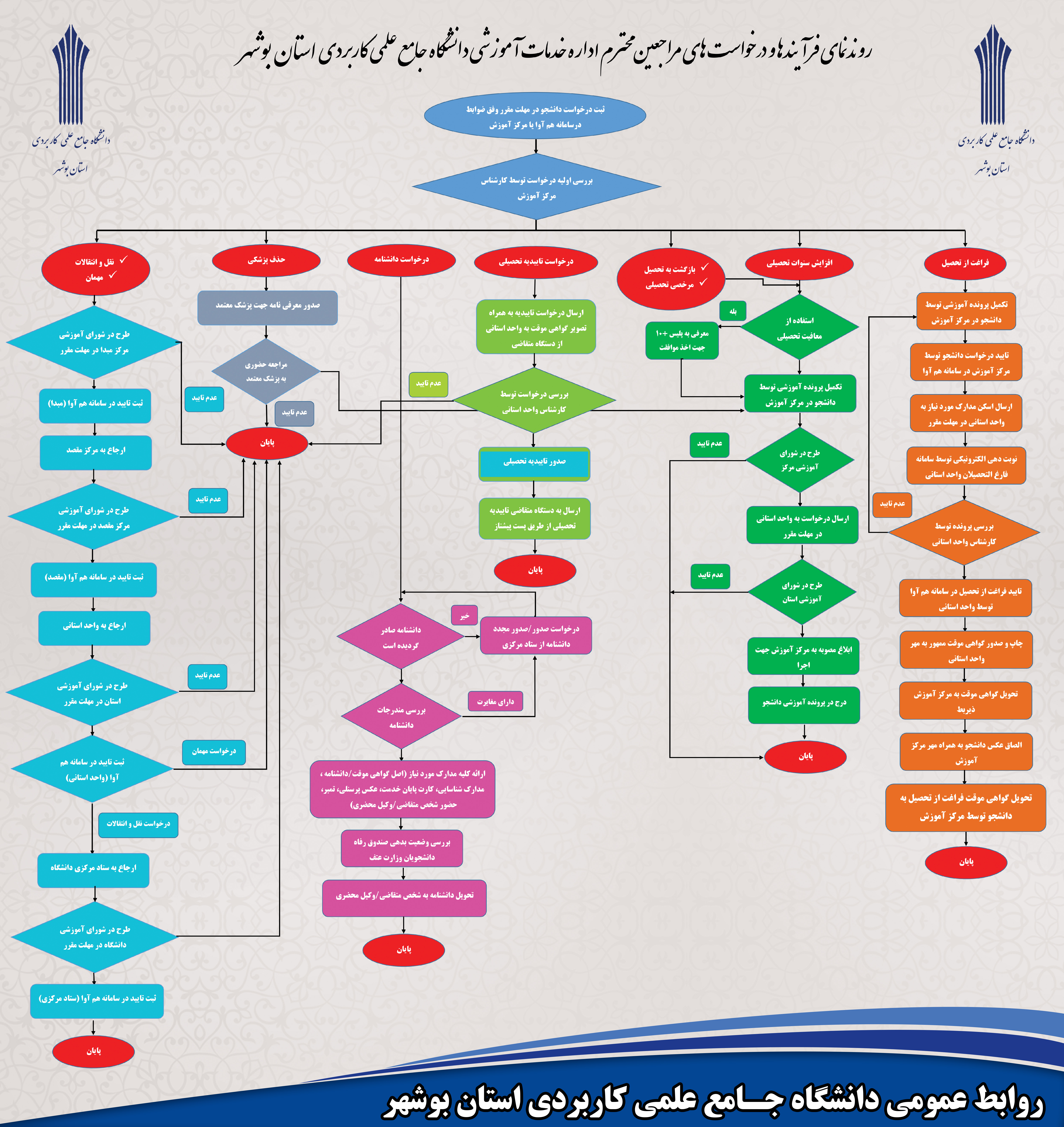 - بررسی و تأیید درخواستهای انتقال، تغییر رشته و انتقال توأم با تغییر رشته عدم حد نصاب